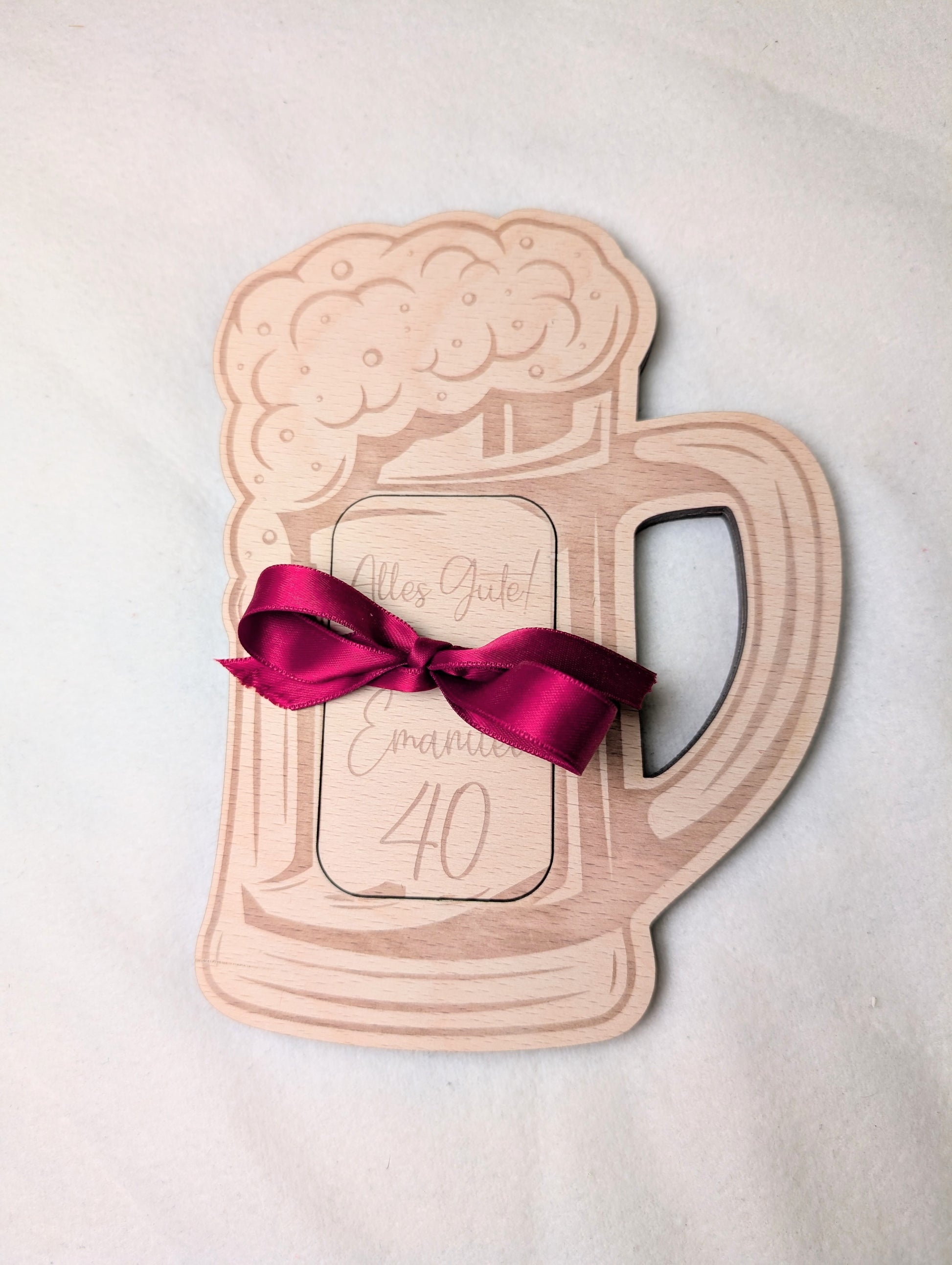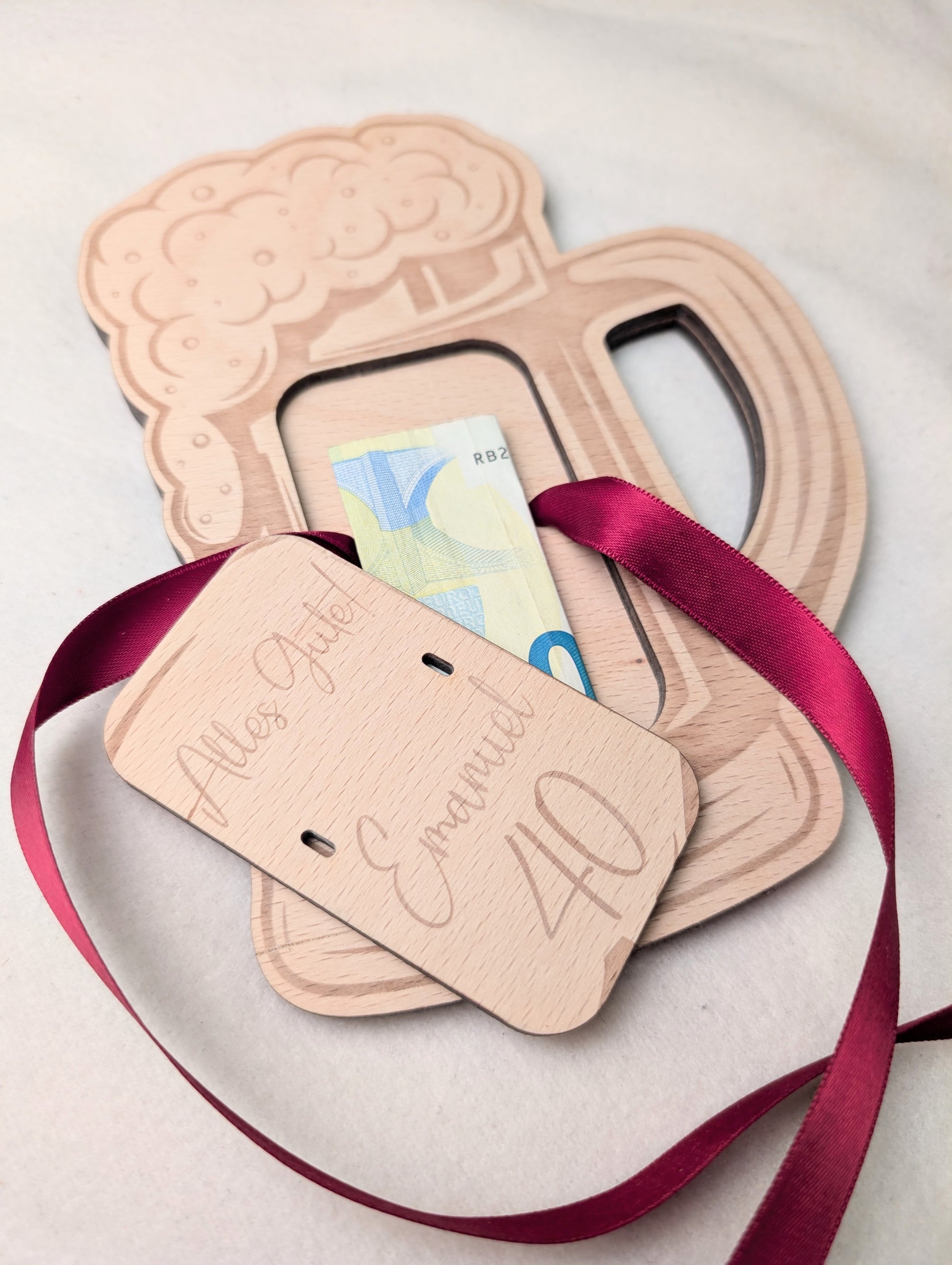 Dieses einzigartige und liebevoll gestaltete Geldgeschenk in Form eines klassischen Bierkrugs ist das perfekte Geschenk, wenn man nicht nur Bargeld oder einen Gutschein schenken möchte. Es verleiht rustikalen Charme mit einer persönlichen Note und ist ideal für alle Bierliebhaber und runde Geburtstage.