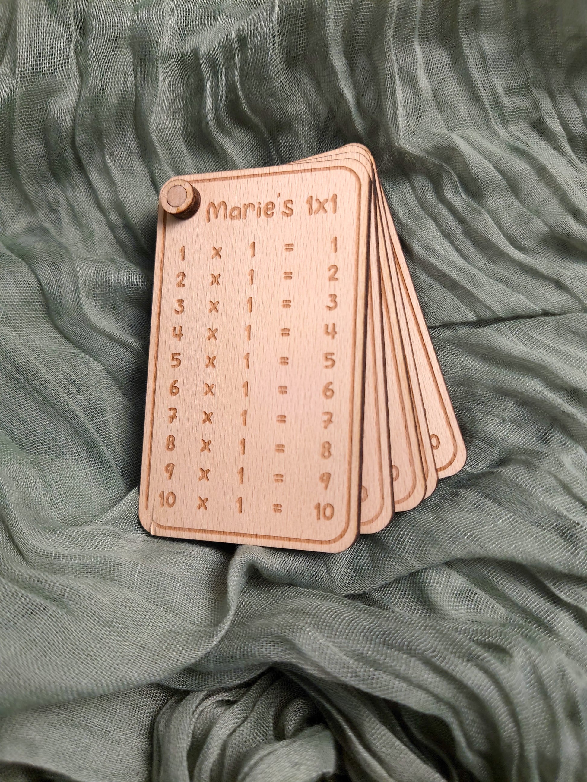 Dieser charmante,personalisierte und langlebige 1x1 Holz- Lernfächer,ist das ideale Geschenk,um Kindern spielerisch das kleine Einmaleins näher zu bringen.